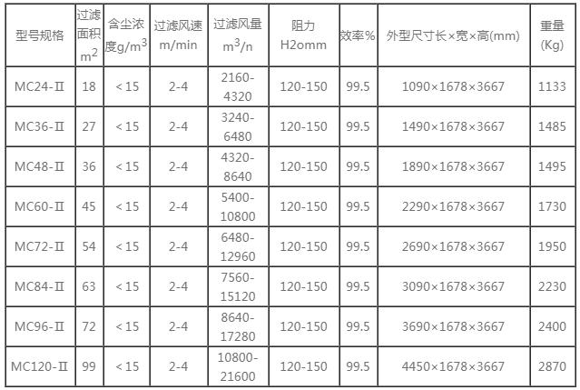MC-II型單機(jī)脈沖除塵器的技術(shù)性能: